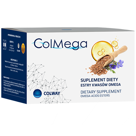 ColMega – to pionierski suplement diety. Przełom w poszukiwaniach kwasów omega o idealnej czystości. Dokonany dzięki polskiemu odkryciu metody bezwodnej estryfikacji oleju lnianego.